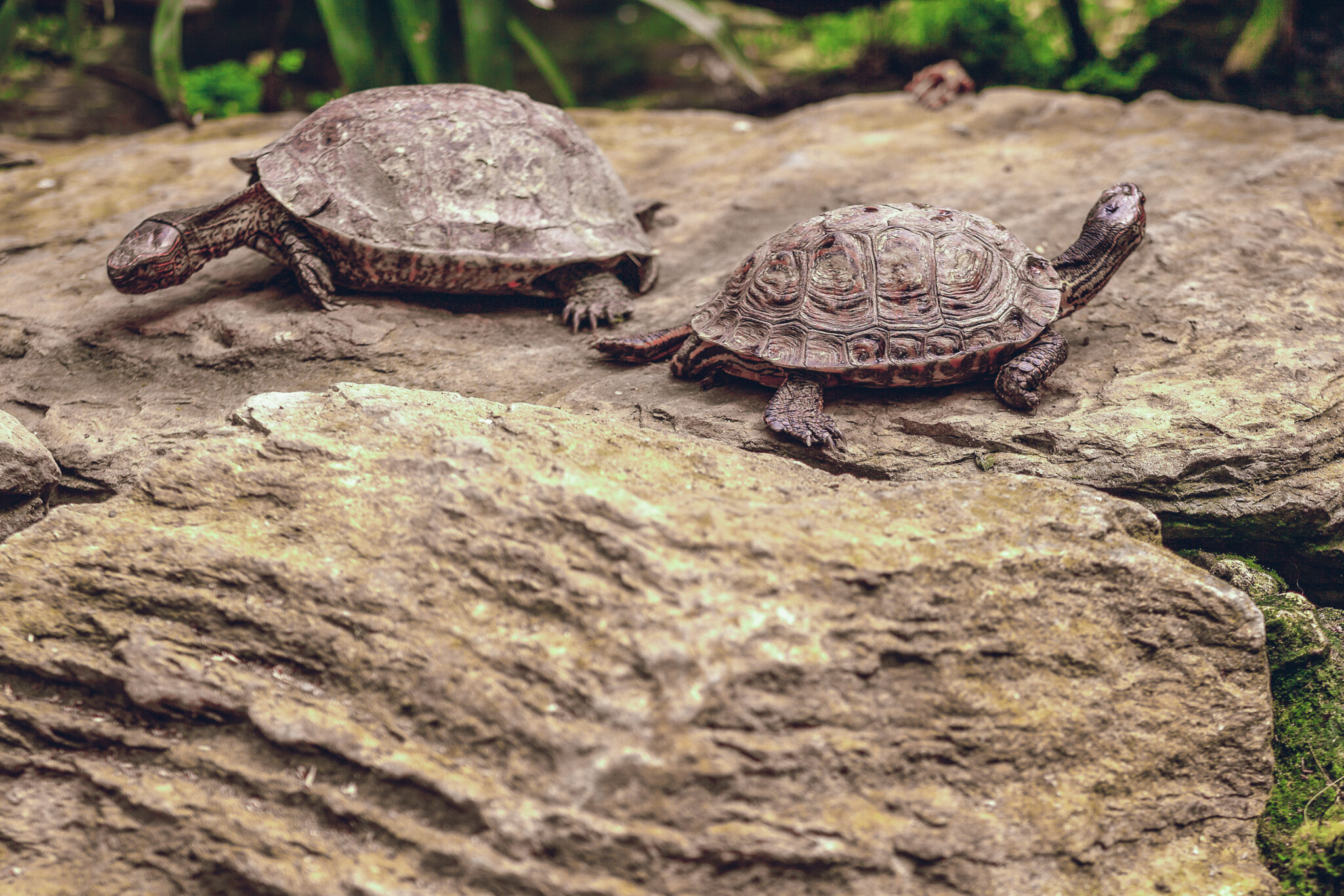 Wenig später erreichte ich das Schildkrötengehege, wo mehrere Schildkröten auf den Felsen ruhten und die Sonne genossen. Schildkröten sind wechselwarme Tiere, die Sonnenbäder zur Thermoregulation benötigen. Im Zoo Krefeld werden verschiedene Arten gehalten, darunter auch Wasserschildkröten und Landschildkröten. Die Tiere lagen bewegungslos da, nur gelegentlich bewegte eine von ihnen langsam den Kopf oder streckte ein Bein aus. Ihre Panzer glänzten im Sonnenlicht, und die strukturierte Oberfläche warf interessante Schatten. Ich machte mehrere Aufnahmen von verschiedenen Winkeln, um die Details der Panzerstruktur einzufangen.