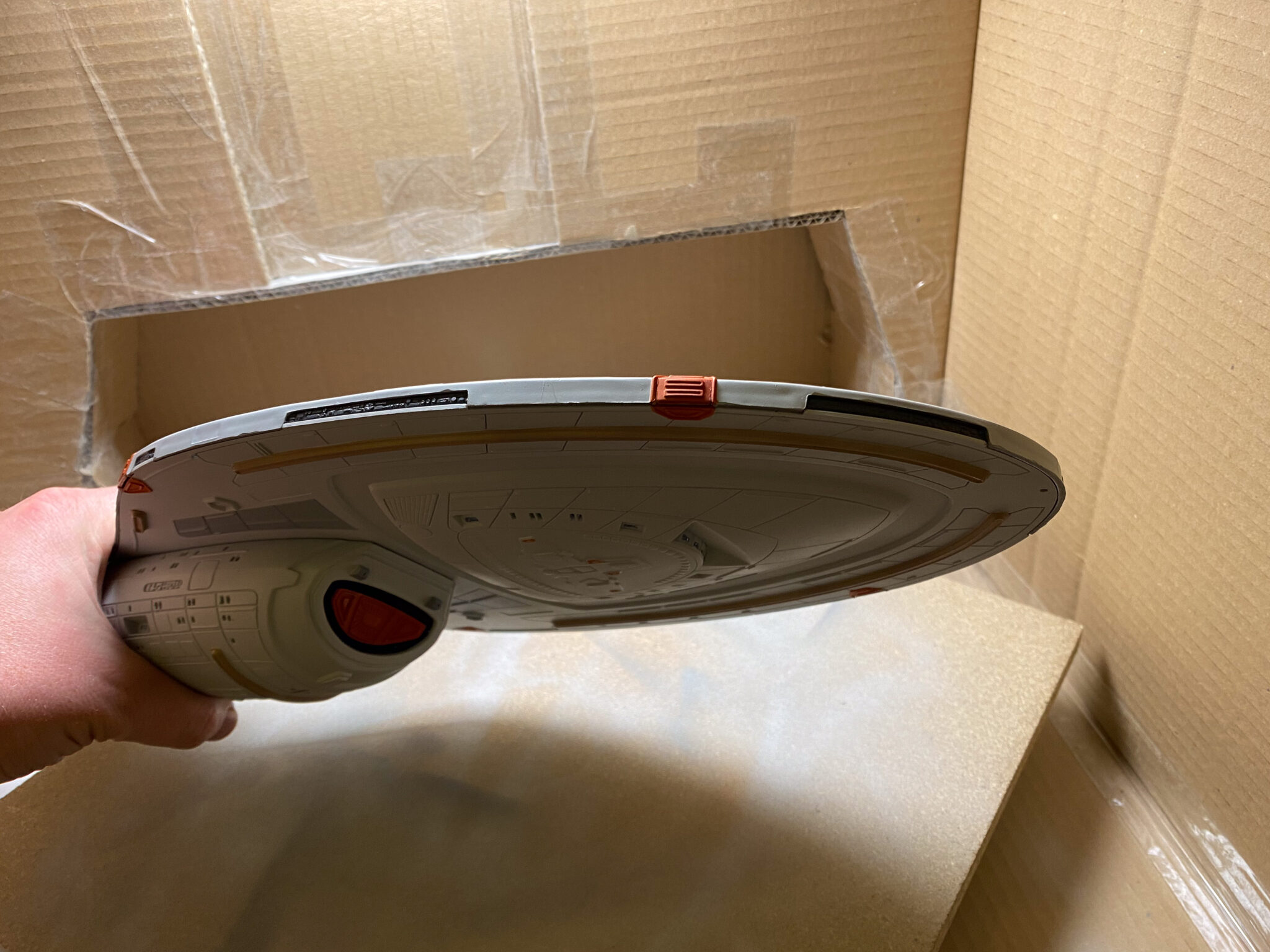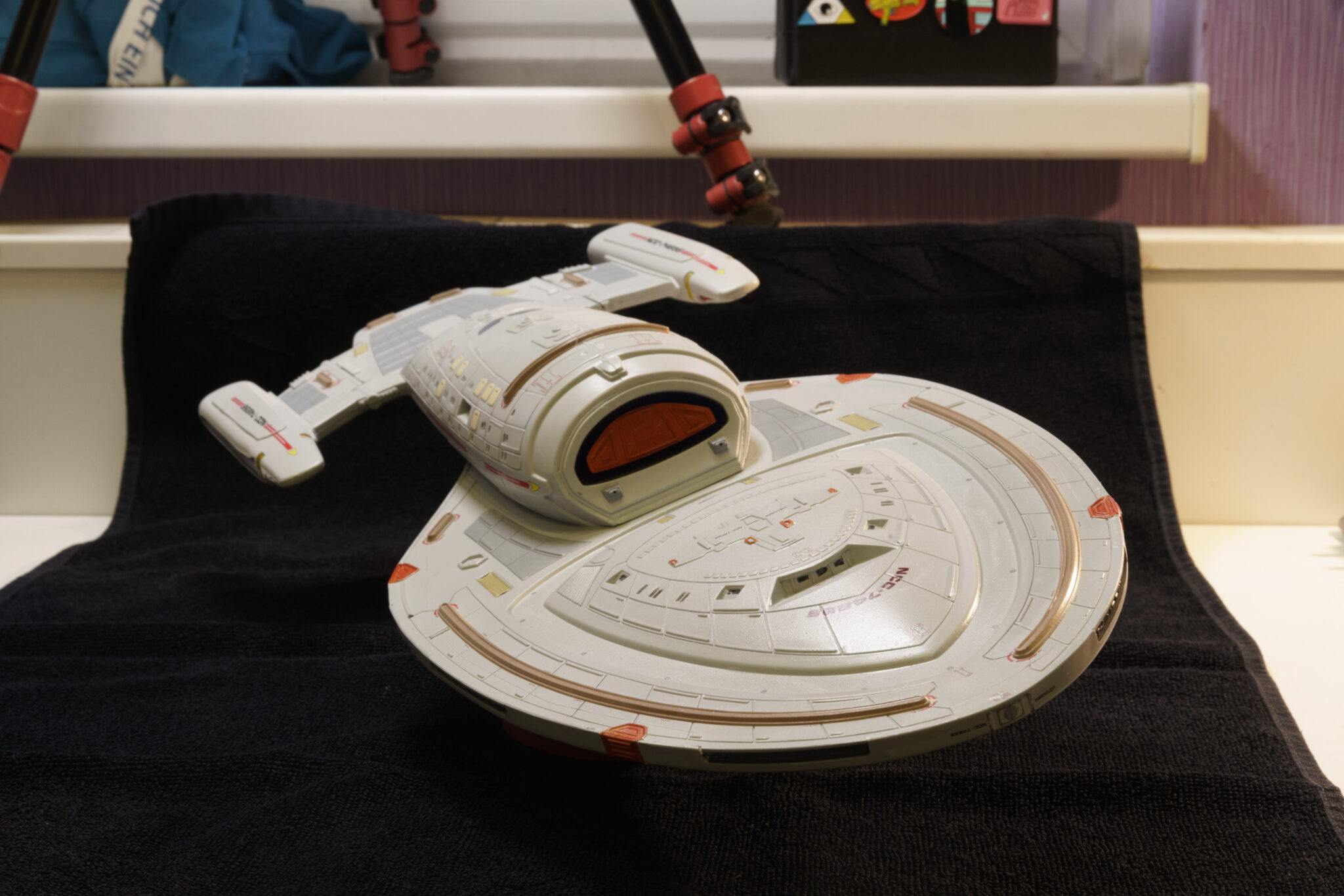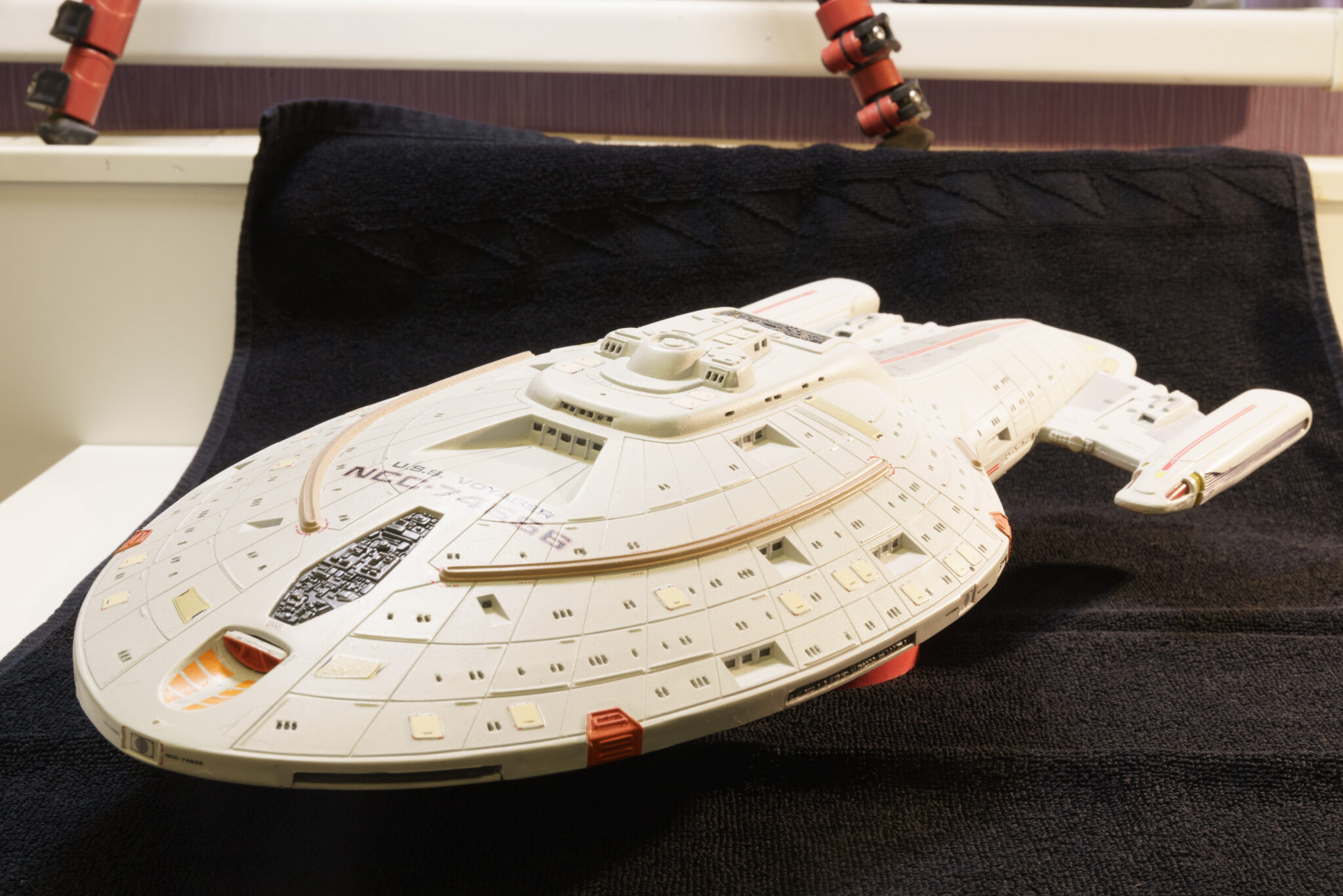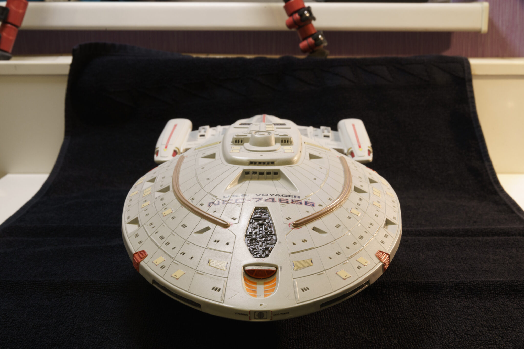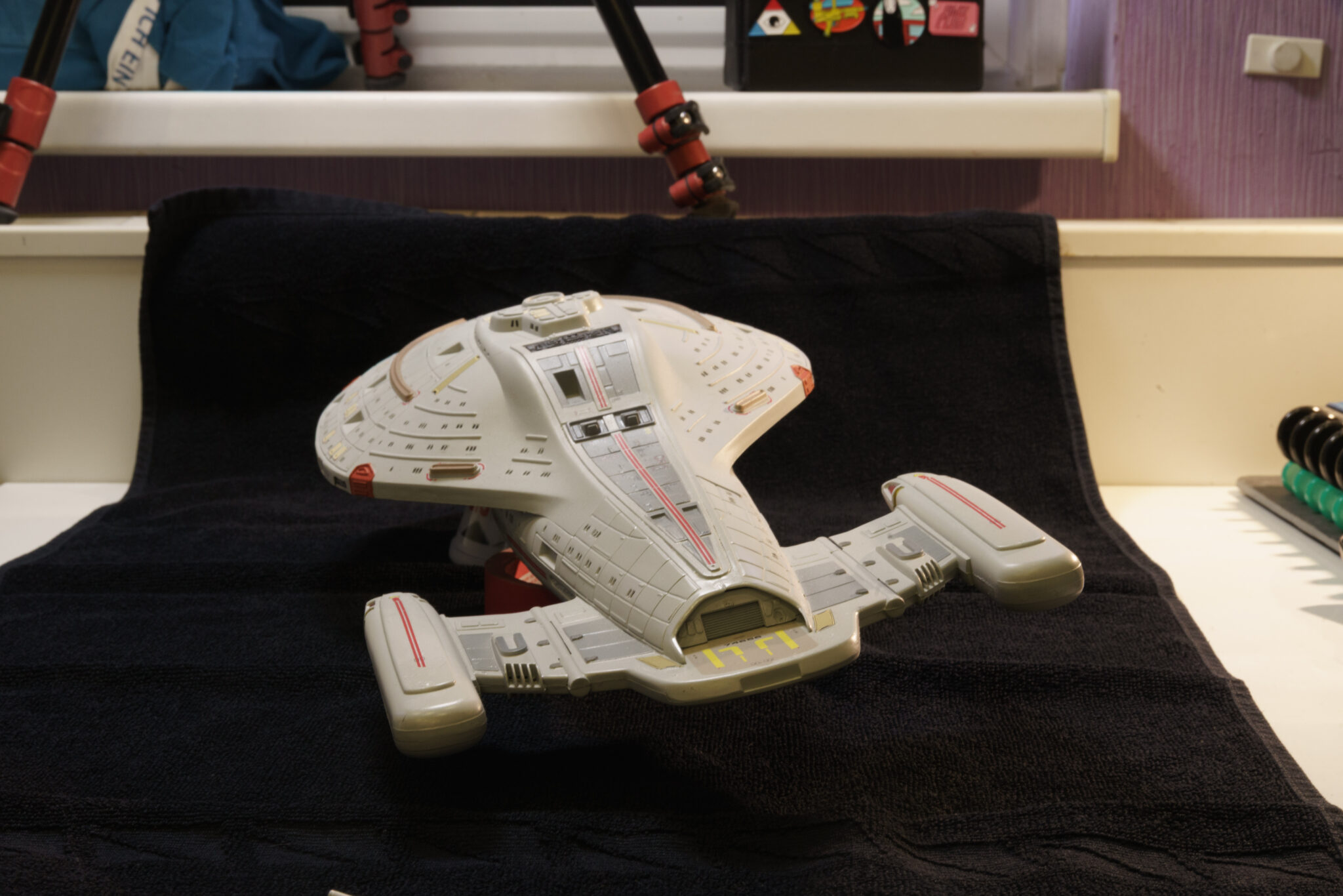 Nach fünf Monaten harter Arbeit hängt die U.S.S. Voyager nun in all ihrer Pracht im Zimmer meines Sohnes und erinnert mich an die Freuden und Herausforderungen des Modellbaus. Dieses Projekt war mehr als nur der Bau eines Modells; es war eine Reise in die Vergangenheit, eine Wiederentdeckung eines alten Hobbys und ein Beweis dafür, dass Geduld und Hingabe zu großartigen Ergebnissen führen können. Auch wenn nicht alles nach Plan verlief, bin ich stolz auf das Endergebnis und freue mich darauf, das nächste Projekt in Angriff zu nehmen.